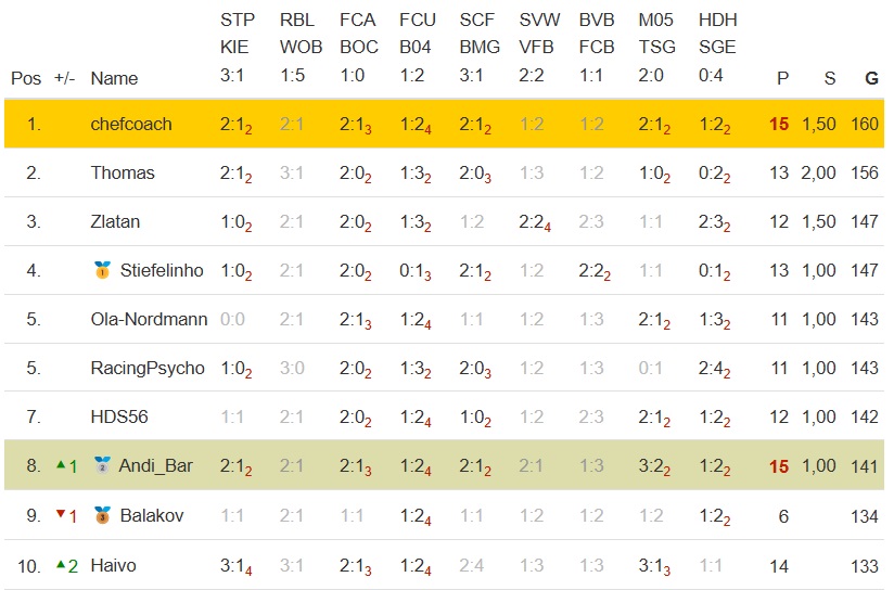 Vielleicht sind euch in einigen Tipprunden Symbole aufgefallen, die neben bestimmten Tippern zu sehen sind. Diese Tipper sind optisch vorgehoben und werden immer angezeigt, egal welche Platzierung sie aktuell einnehmen. In großen Tipprunden mit vielen Tippern sind diese Tipper also dann auch auf Seite 1 sichtbar, selbst wenn sie einen hinteren Rang einnehmen.