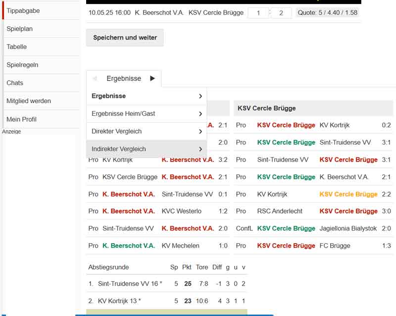 Die beliebte Tippspielplattform Kicktipp erweitert wieder einmal ihren Funktionsumfang. Die Veränderung liegt diesmal im Detail und kann eine wertvolle Hilfe beim Tippen bieten. Es handelt sich um das Feature Indirekter Vergleich. Zu sehen ist die neue Funktion bei der Tippabgabe, wenn man Tippabgabe mit Spielinfos wählt.